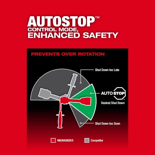 - Auto-Stop Feature to Protect from overroation in a bindup for enhanced safety, equipped with a dedicated autostop light on foot of tool to indicate a protection event