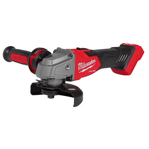 The MILWAUKEE M18 FUEL 4-1/2-inch / 5-inch Grinder Slide Switch, Lock-On is the next advancement in power and performance, generating 11A corded power, fastest cutting, and delivering up to 135 cuts per charge. It generates 11A corded power allowing completion of the toughest grinding and cutting applications, all on the M18 cordless system. The POWERSTATE Brushless Motor delivers maximum sustained power and 8,500 RPM to remove material faster and increase productivity. REDLINK PLUS Intelligence ensures unmatched levels of performance, protection, and compatibility. The M18 FUEL 4-1/2-inch / 5-inch Grinder includes an electronic clutch for kickback protection, as well as overload protection to maximize motor life. Experience faster accessory changes and less downtime with tool-free accessory and guard adjustments while remaining fully compatible with the most common accessories in the market. This Grinder takes cordless grinders to the next level in performance and run-time.